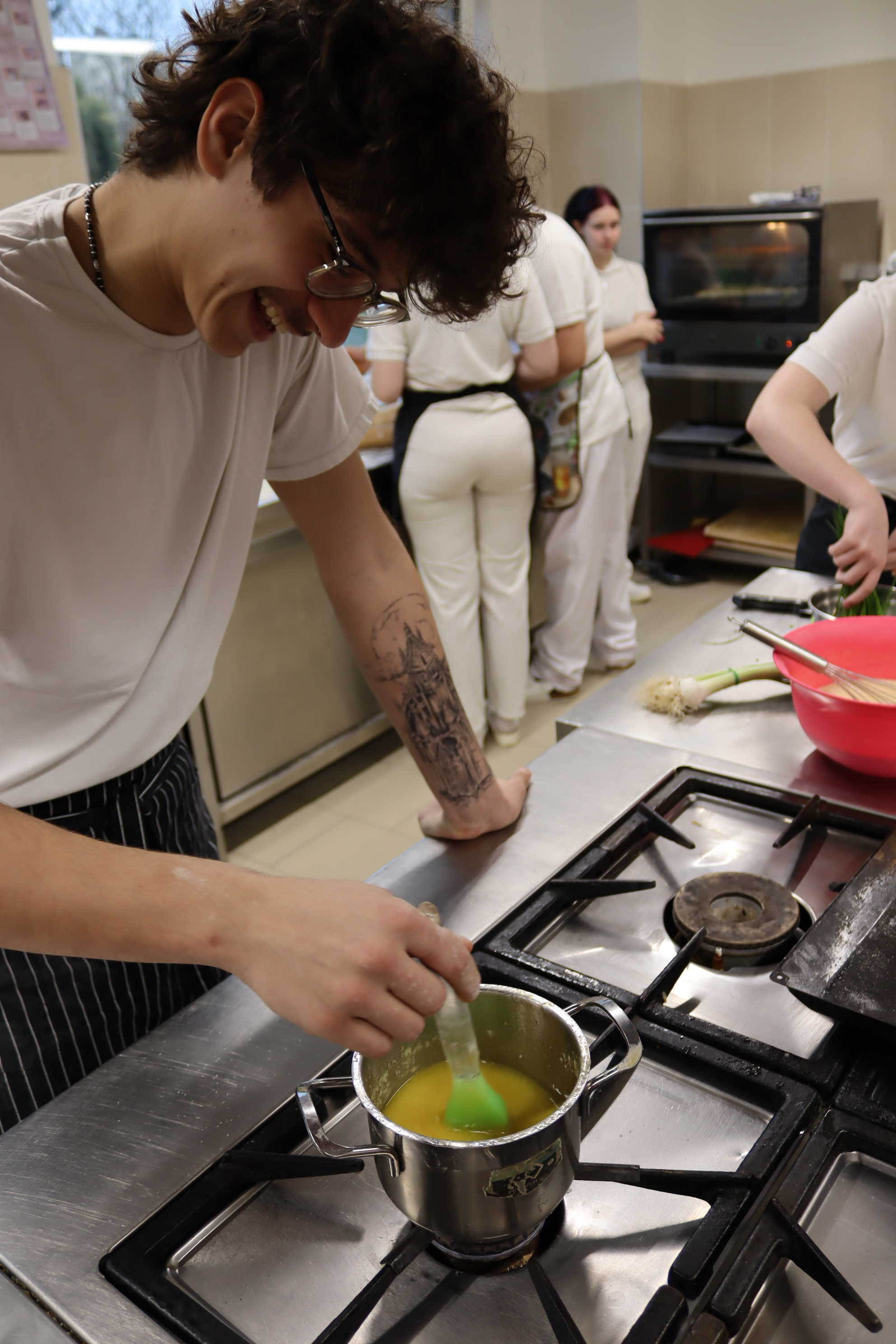 Obory Hotelnictví (hotelnictví a turismus) a Kuchař-číšník se postaraly o gastronomický zážitek. Připravily degustační pokrmy inspirované pivem a zorganizovaly také školu čepování, kde si účastníci mohli vyzkoušet správnou techniku servírování.